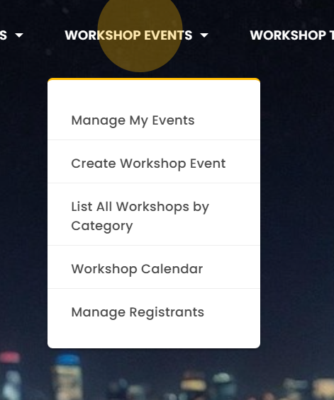 - Click on the menu link Create Workshop Event,