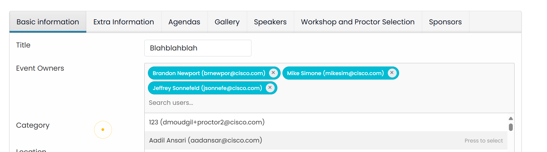WHO can create workshop events? - Currently ONLY Cisco employees can schedule a workshop event.